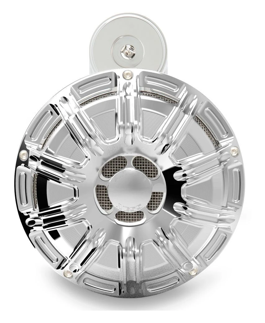 Each horn kit includes a high performance 110 dB horn which is considerably louder than stock. This can improve your safety by increasing your ability to be heard when you need it most. The new horn simply plugs into your factory wiring for easy installation. Each horn kit also includes an exclusive forged billet aluminum housing with a stainless steel mesh insert. These housings were designed to provide great styling and a compact package for maximum leg clearance. The forged aluminum construction also ensures a lifetime of durability and maximum strength to weight ratio.