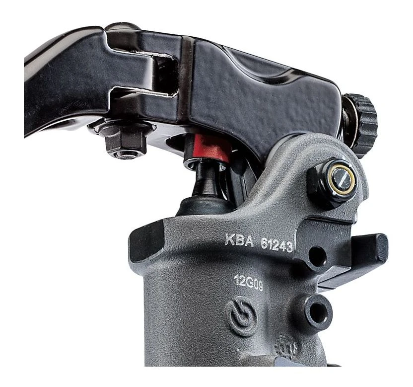 The Brembo RCS Brake Master Cylinder allows the rider to choose between more power or more precision to best complement their riding style, track/street conditions and other brake components. The unique design of the RCS system offers the flexibility to change the brake lever ratio at the turn of a screw. The 20mm setting provides a more reactive braking response and the 18mm setting allows for better feel and modulation. Additionally, the Brembo lever features an adjustable thumb screw that can be customized to fit a range of riders’ hands. In the event of a crash the outer portion of the lever folds up and away to avoid damage. The patented master cylinder is constructed of forged aluminum and then CNC machined down to remove any excess weight. All of its components, including the piston, seals and pushrod, are the same as those used in MotoGP and WSBK.
