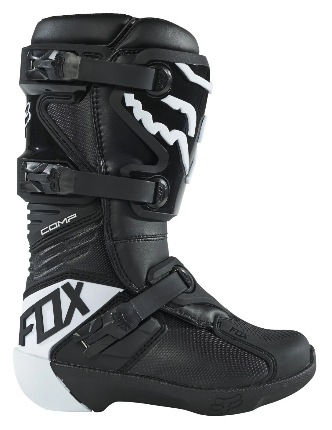 Drawing inspiration from the Instinct Boot, Fox Racing has taken a favorite of seasoned riders and simplified it to suit those at the entry level. Offering the same instant comfort and support as its predecessor, the all-new Comp Boot requires zero break-in time. A robust rubber outsole, as well as burn and medial guards, provide remarkable grip and feel on the bike while the internal steel shank offers support on the foot pegs. Utilizing the same lower buckle closure as the Instinct Boot, the Comp Boot also offers a secure fit over the top of the foot. Additionally, TPU shin plates, toe caps and calf guards provide full coverage and additional protection.
