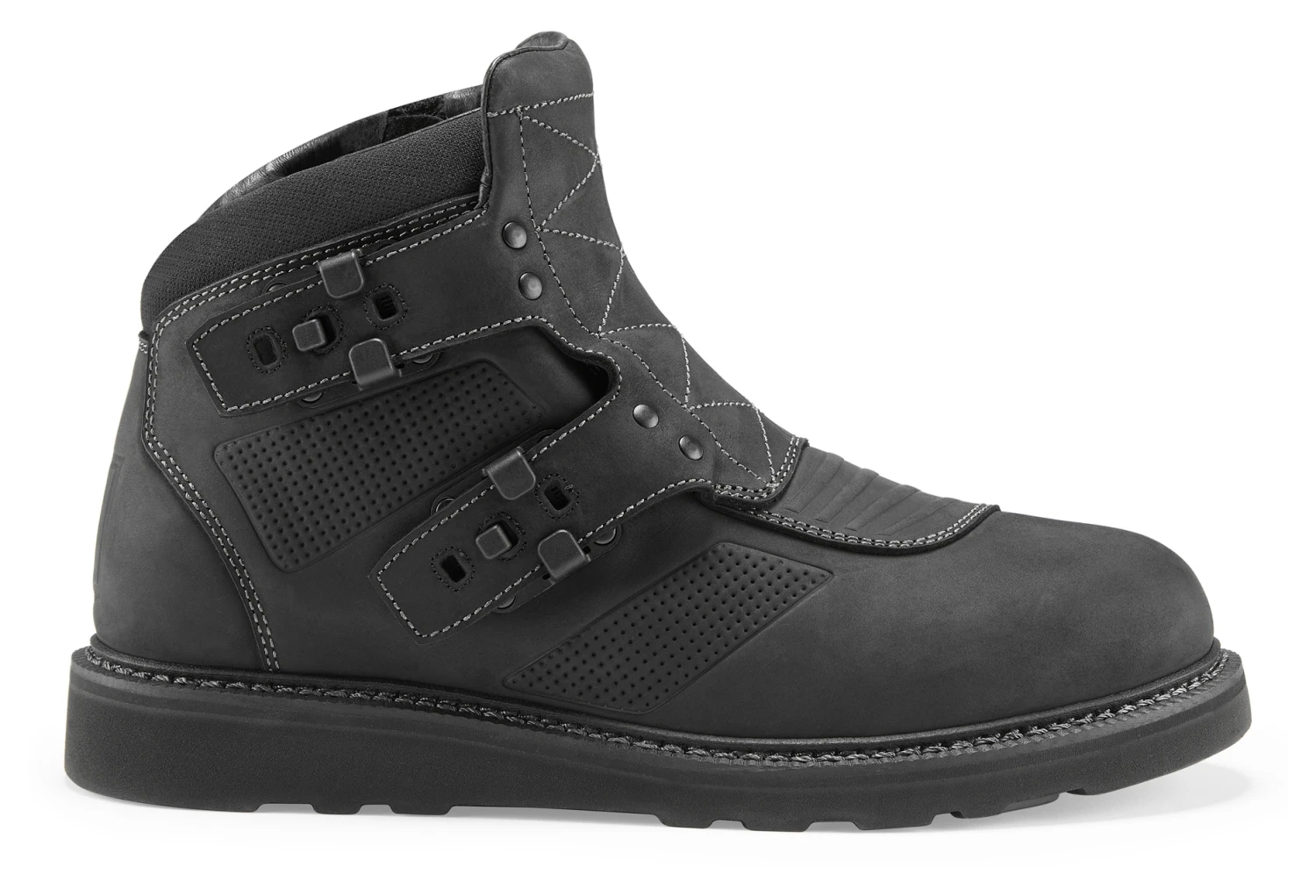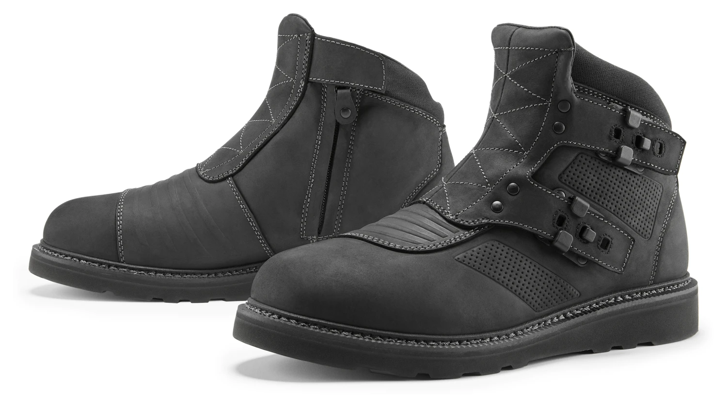 In Spanish El Bajo means “The Short One”, but the Icon El Bajo Boots come up far from short when it comes to performance and steez. Based on the design of the Elsinore Boots, the El Bajo have the same Goodyear welt sole and buckles, but in a shorter package for when full size boots just aren’t convenient for the mobile masses. Impact-resistant nylon buckles, heavy top-grain leather chassis, and reinforced toe box and heel make for a serious piece of riding footwear.