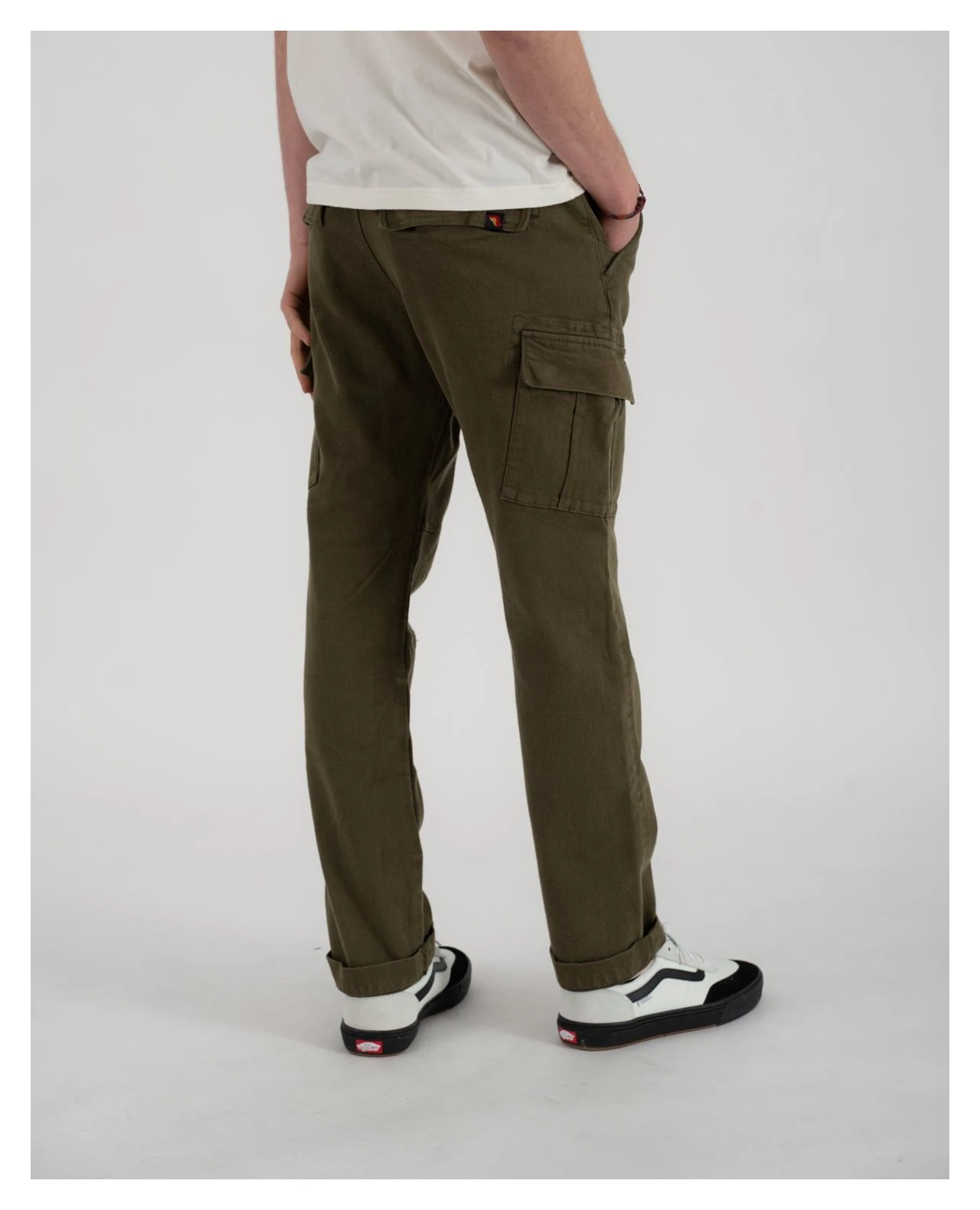 - Cool casual look in washed olive green