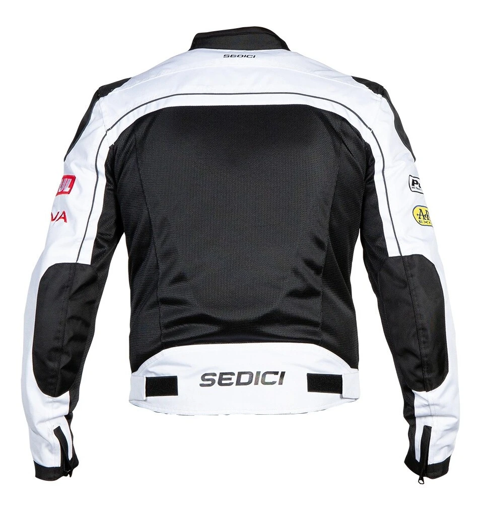 The Sedici Podio Jacket mixes sporty styling with mesh material so you can turn up the hot weather performance. Heavy duty 600D Oxford textile makes up the main chassis of the jacket with mesh airflow panels at the torso, inner arms and back. This combination protects against abrasion while allowing air to flow freely, especially when moving at speed. Extra layers of 1680D Oxford textile cover the elbows and shoulders to bolster the abrasion resistance. CE rated elbow and shoulder armor come standard, but the back protector insert is sold separately. A removable waterproof inner liner keeps you dry and also keeps wind from cutting through the mesh jacket when the temperatures are mild. A neoprene rolled comfort collar helps ward off chaffing. Carbon reflective piping adds pops of reflective in headlights.